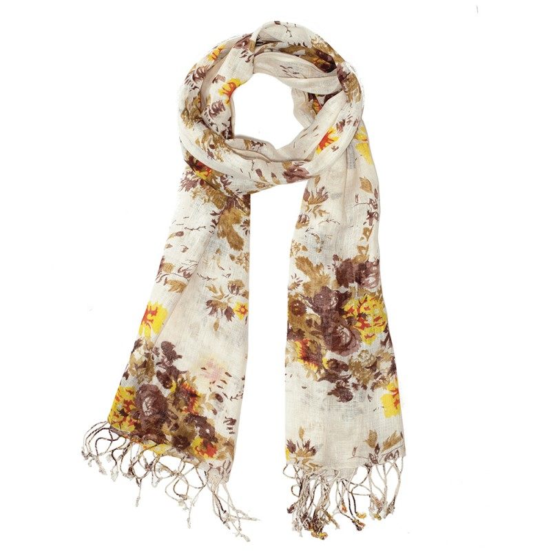 Klassisk halsduk med blommiga tryck i jordfärger.
