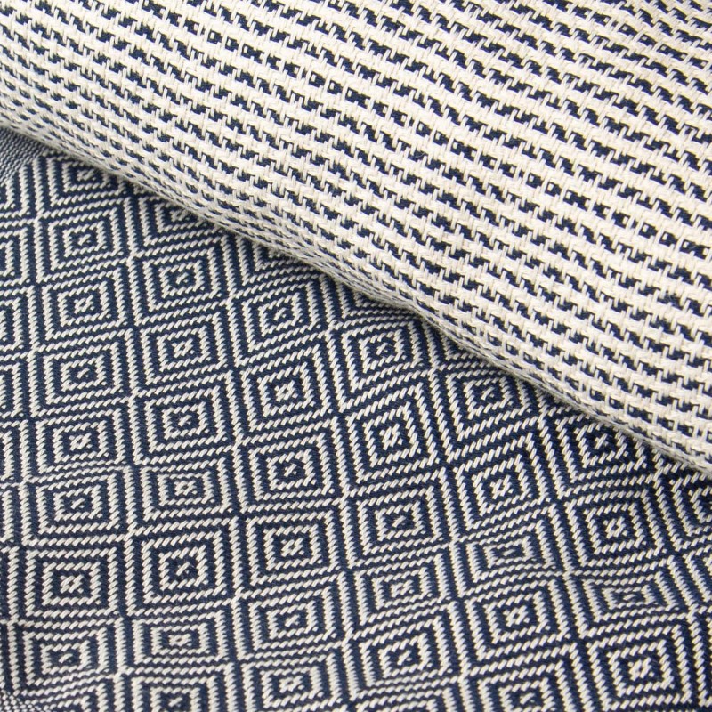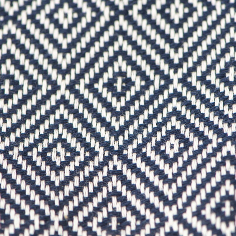 Marinblå hamamhandduk i diamant och ränder.