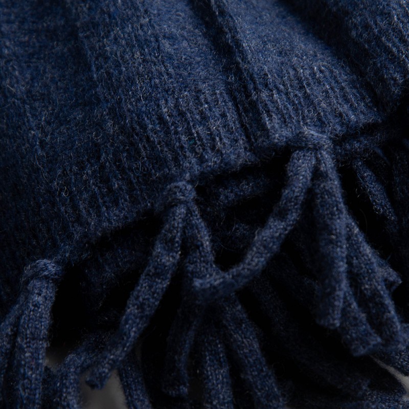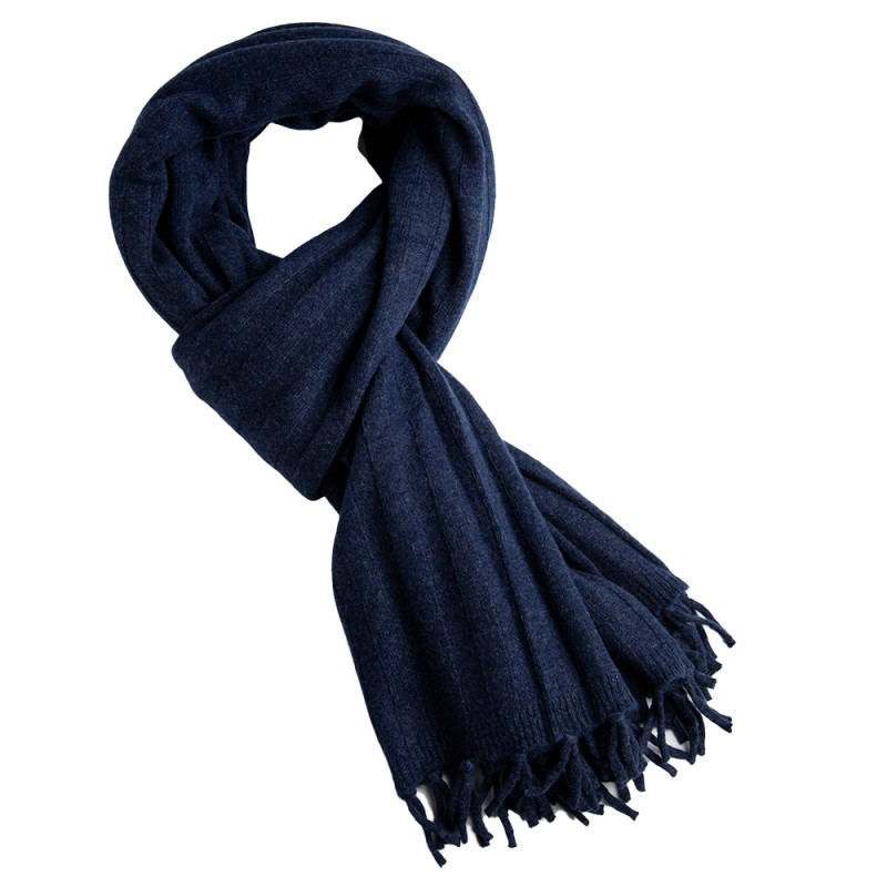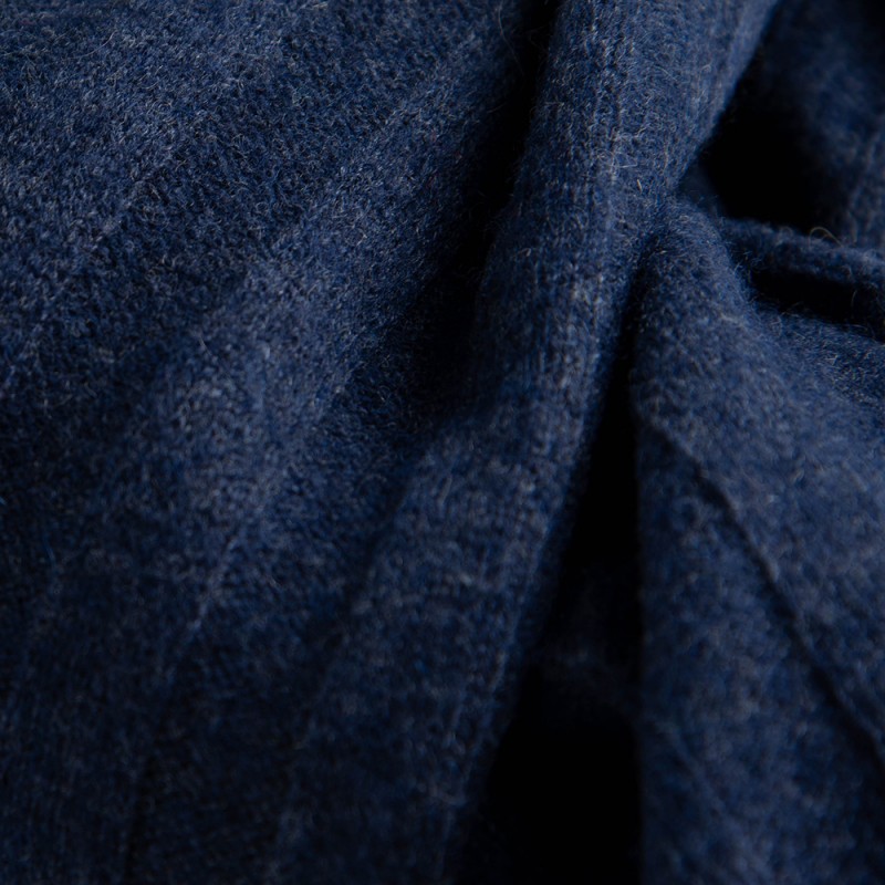 Indigofärgad ribstickad halsduk i merino / kashmir.