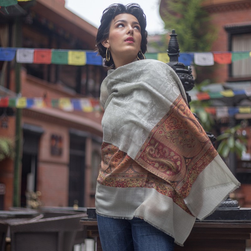 Paisley scarf i ren kashmir. Brun och ljus grå.