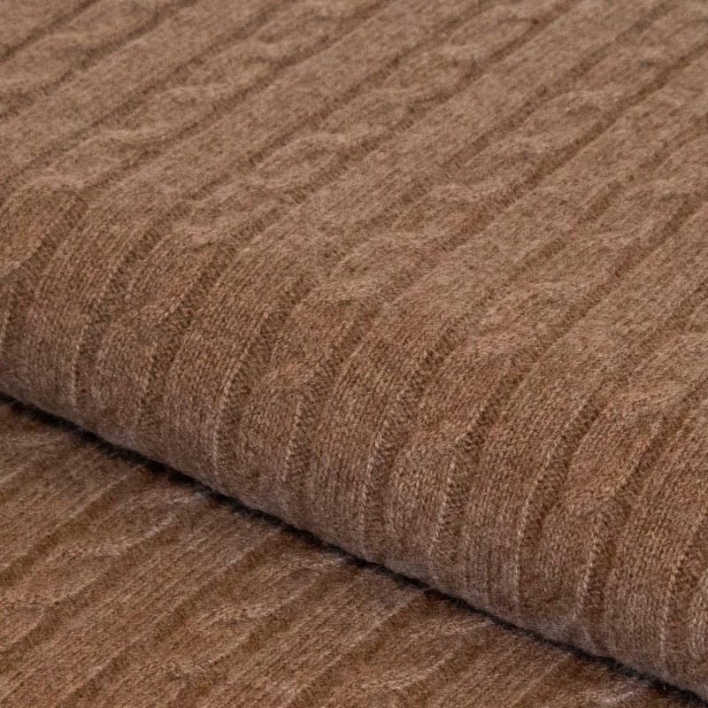 View larger Taupegrå kabelstickad kashmir filt. Filten mäter 200 x 180 cm.