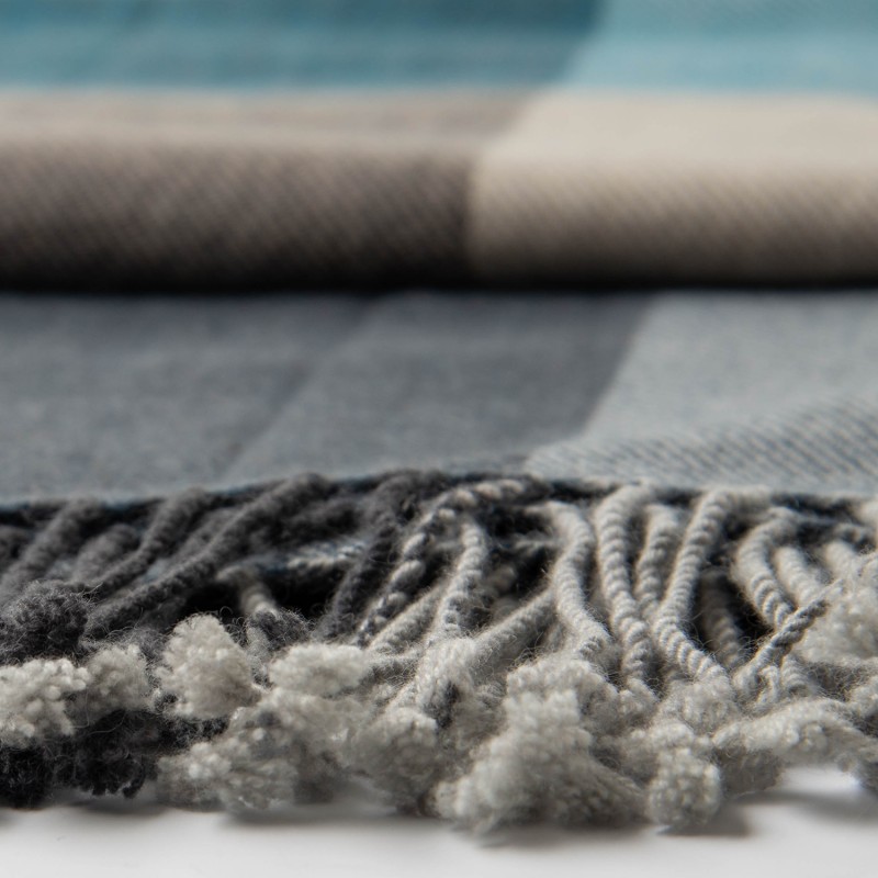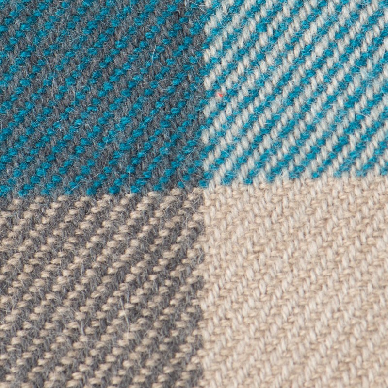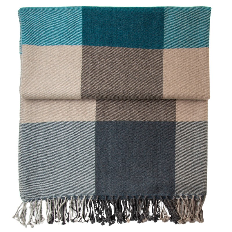 View larger Handvävd rutig pläd i blå, beige och grå. Pläden mäter 190 x 150 cm.