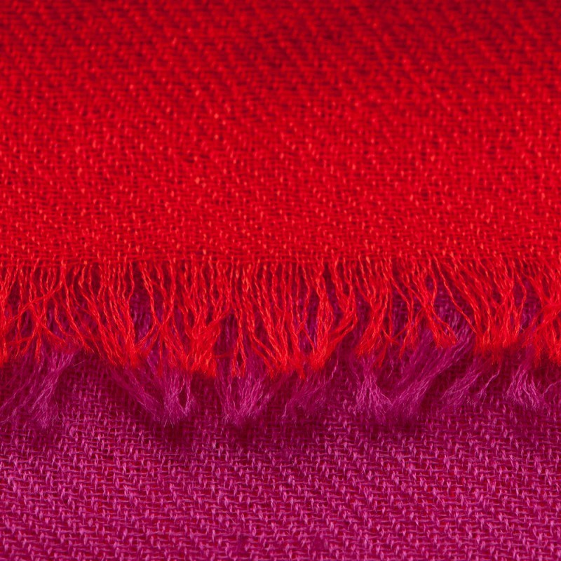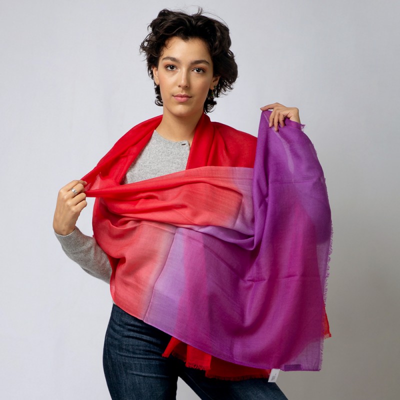 View larger Tvåfärgad pashmina sjal i violett og korallrött. Ren 2 ply kashmir
