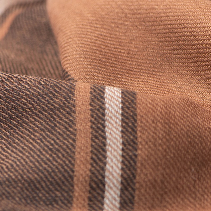 View larger Kashmirsjal i ljusbrun med svarta och vita ränder. 200 x 100 cm.