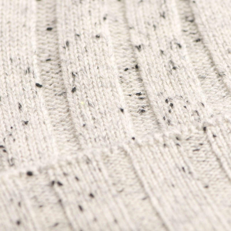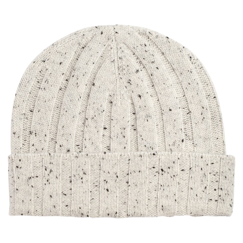 Klassisk Vit flecked ribbstickad kashmir mössa.