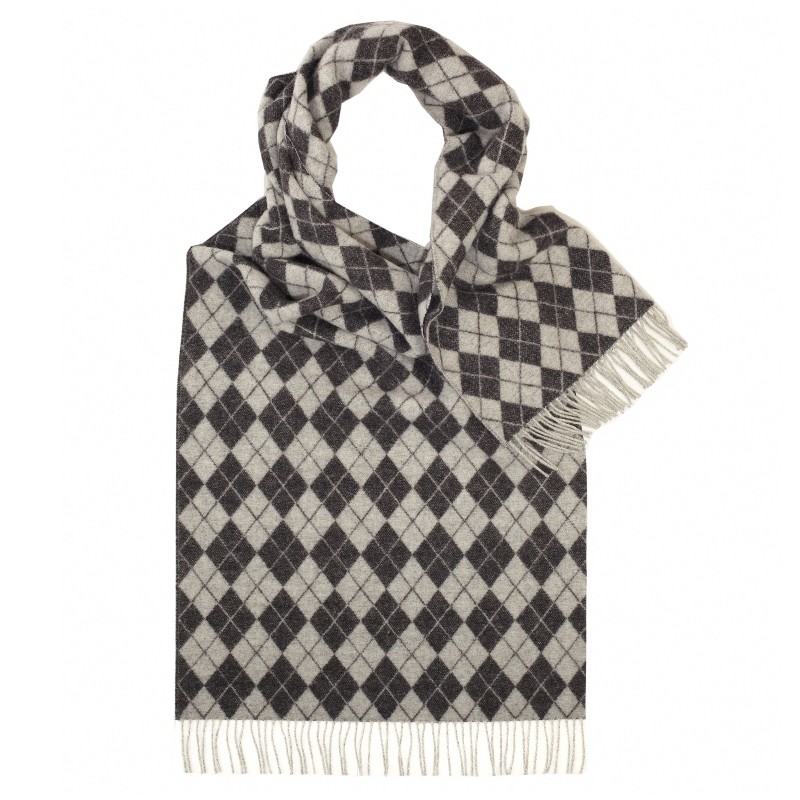 Halsduk med grått harlekinmönster.