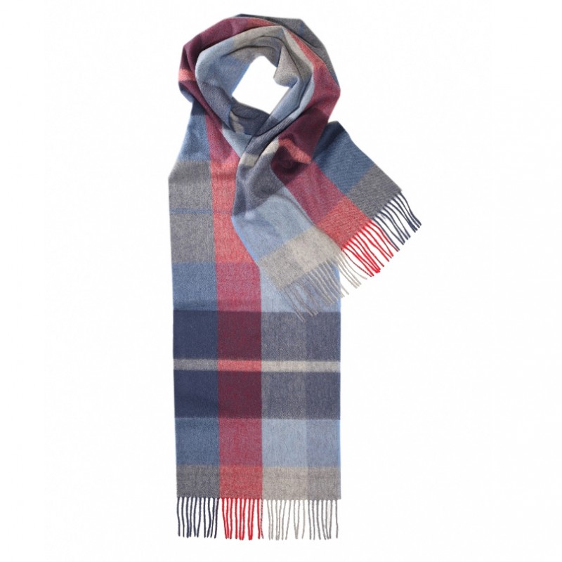 Rutig halsduk i nyanser av blått och rött. 190 x 35 cm
